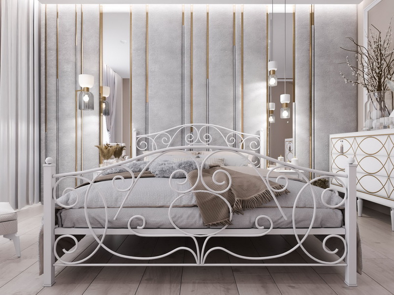 Металлическая кованая кровать Виктория – одна из самых ярких и грациозных моделей. Она подойдет как для винтажного интерьера, так и для классической спальни. Эта модель будет мило смотреться в детской комнате. Её романтические волны и завитки придадут изысканность даже в самой простой обстановке.