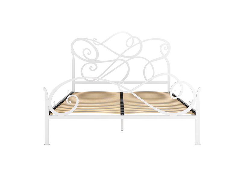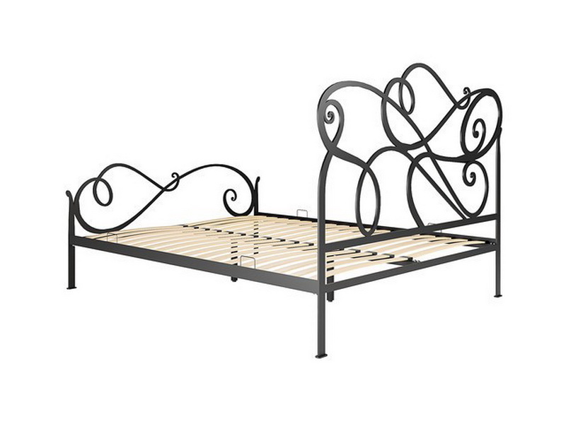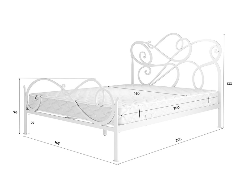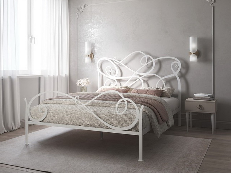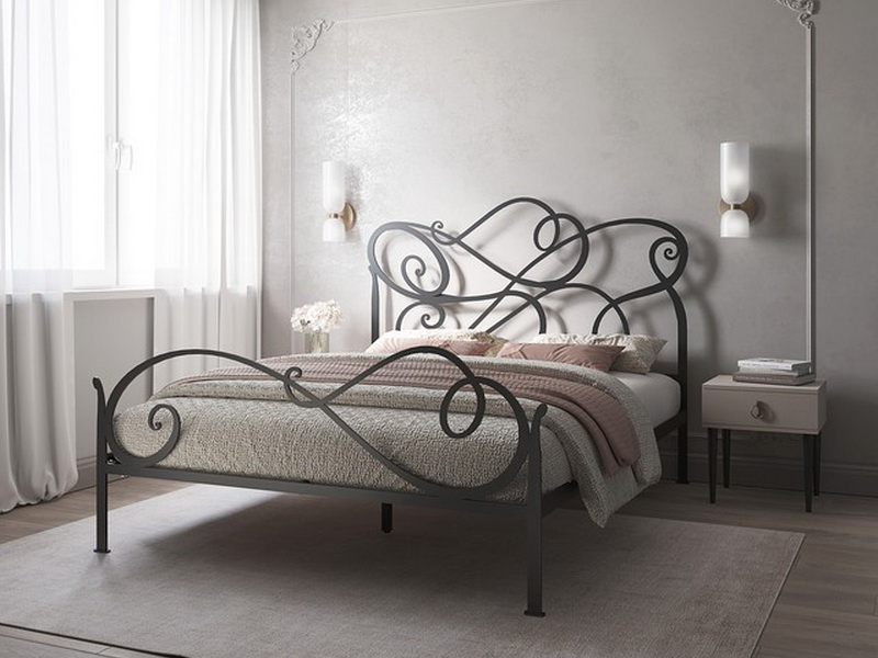 Плавные кованые линии спинки и изножья формируют цельную композицию, напоминающую графику ручной работы. Орнамент выглядит легким и воздушным, при этом конструкция остается прочной и выверенной по геометрии.
