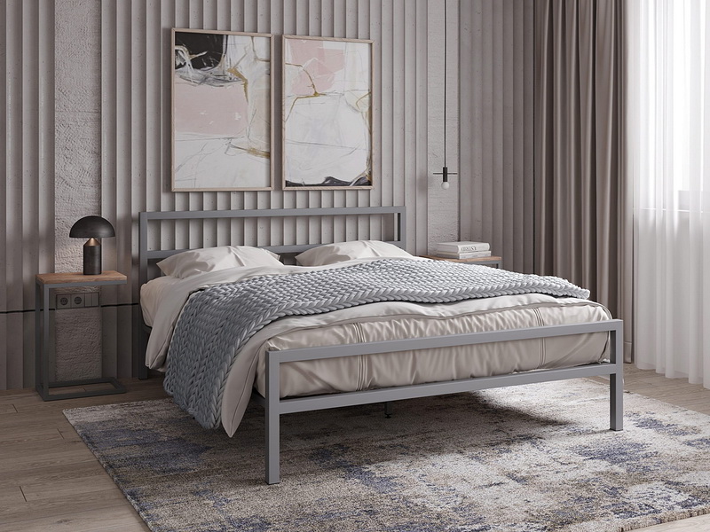 Металлическая кровать Наргиз выполнена в стиле лофт. Ортопедическое основание из березы, как и во всех кроватях на сайте, входит в состав. Современный дизайн и прочная конструкция интересна тем, что в зависимости от ее цвета и интерьера, в котором она будет находиться, поменяется и восприятие ее образа. Именно эта деталь позволяет быть универсальной. В темных цветах прекрасно будет смотреться на фоне кирпичной стены или стены, имитирующей бетонную поверхность.