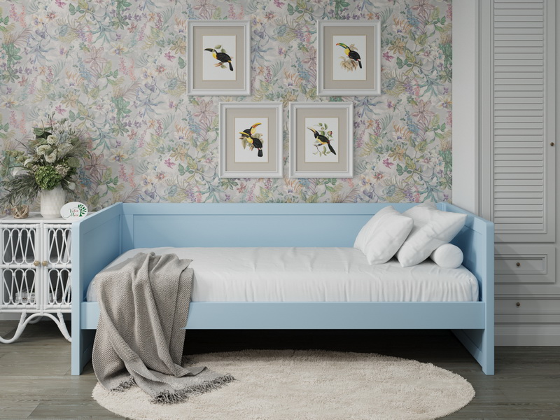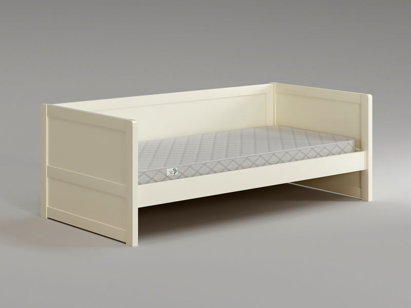 Кровать доступна любом цвете по каталогу RAL. Комплектуется ортопедическим основанием из ламелей и ДВП.